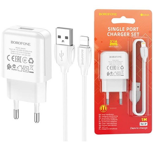 Сетевое З/У 1xUSB BOROFONE BA64A + кабель Lightning 10.5W