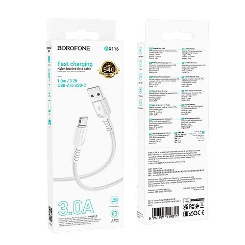 Кабель USB -> Type C 1m BOROFONE BX116 18W 3A MAX